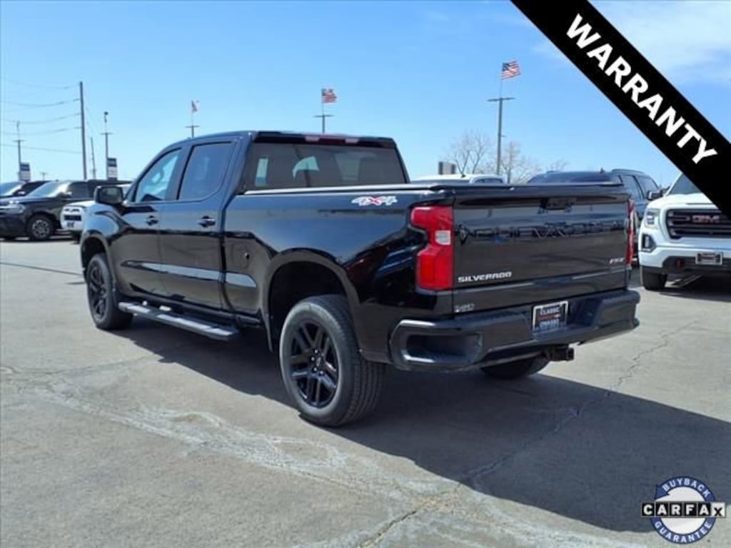 **4WD**, **ANDROID CARPLAY**, **APPLE CARPLAY**, **AUTO HEADLIGHTS**, **BLUETOOTH**, **CLEAN CARFAX**, **HD RADIO**, **HEATED SEATS**, **KEYLESS ENTRY**, **REAR BACKUP CAMERA**, **REMOTE START**, **RUNNING BOARDS**, **TOW PACKAGE**, **USB PORT**. Convenience Package (10-Way Power Driver Seat w/Lumbar, 120-Volt Bed Mounted Power Outlet, 120-Volt Instrument Panel Power Outlet, Dual Rear USB Ports (Charge Only), Dual-Zone Automatic Climate Control, Electric Rear-Window Defogger, Heated Driver & Front Outboard Passenger Seats, Heated Steering Wheel, Keyless Open & Start, Remote Vehicle Starter System, Theft Deterrent System (Unauthorized Entry), and Wrapped Steering Wheel), Standard Suspension Package, Trailering Package (Hitch Guidance), 12.3 Multicolor Reconfigurable Digital Display, 220 Amp Alternator, 4-Wheel Disc Brakes, 40/20/40 Front Split-Bench Seat, 6 Speakers, 6-Speaker Audio System, ABS brakes, Air Conditioning, All-Star Edition, Alloy wheels, AM/FM radio: SiriusXM with 360L, Apple CarPlay/Android Auto, Auto High-beam Headlights, Auto-Locking Rear Differential, Automatic Emergency Braking, Automatic temperature control, Bluetooth® For Phone, Brake assist, Bumpers: body-color, Chevrolet Connected Access Capable, Cloth Seat Trim, Color-Keyed Carpeting Floor Covering, Compass, Deep-Tinted Glass, Delay-off headlights, Driver door bin, Driver vanity mirror, Dual front impact airbags, Dual front side impact airbags, Electrical Steering Column Lock, Electronic Cruise Control, Electronic Stability Control, EZ Lift Power Lock & Release Tailgate, Following Distance Indicator, Forward Collision Alert, Front anti-roll bar, Front Center Armrest w/Storage, Front dual zone A/C, Front fog lights, Front Frame-Mounted Black Recovery Hooks, Front LED Fog Lamps, Front Pedestrian Braking, Front reading lights, Front Rubberized Vinyl Floor Mats, Front wheel independent suspension, Fully automatic headlights, HD Rear Vision Camera, Heated door mirrors, Heated front seats, Heated Power-Adjustable Outside Mirrors, Heated steering wheel, High Gloss Black Mirror Caps, Illuminated entry, Inside Rear-View Mirror w/Tilt, IntelliBeam Automatic High Beam On/Off, Lane Keep Assist w/Lane Departure Warning, LED Cargo Area Lighting, Low tire pressure warning, Occupant sensing airbag, OnStar & Chevrolet Connected Services Capable, Outside temperature display, Overhead airbag, Overhead console, Panic alarm, Passenger door bin, Passenger vanity mirror, Power door mirrors, Power driver seat, Power Front Windows w/Driver Express Up/Down, Power Front Windows w/Passenger Express Down, Power Rear Windows w/Express Down, Power steering, Power windows, Premium audio system: Chevrolet Infotainment 3 Premium, Radio data system, Radio: Chevrolet Infotainment 3 Premium System, Rear 60/40 Folding Bench Seat (Folds Up), Rear reading lights, Rear Rubberized-Vinyl Floor Mats, Rear step bumper, Rear window defroster, Remote keyless entry, Security system, SiriusXM w/360L, Speed control, Speed-sensing steering, Split folding rear seat, Standard Tailgate, Steering Wheel Audio Controls, Steering wheel mounted audio controls, Tachometer, Telescoping steering wheel, Tilt steering wheel, Traction control, Trip computer, Variably intermittent wipers, Voltmeter, Wheels: 18 x 8.5 Bright Silver Painted Aluminum, Wi-Fi Hot Spot Capable, and Wireless Phone Projection.2023 Chevrolet Silverado 1500 RST 4WD 10-Speed Automatic 3.0L I6 Black22/27 City/Highway MPG