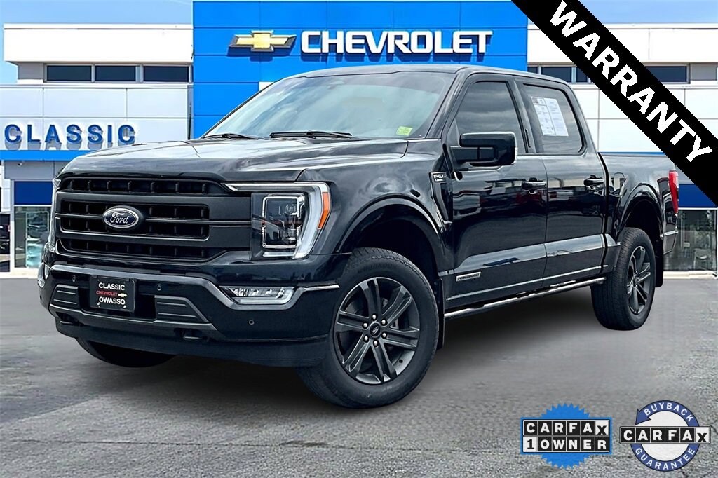 Recent Arrival! **4WD**, **ANDROID CARPLAY**, **APPLE CARPLAY**, **AUTO HEADLIGHTS**, **BLUETOOTH**, **CLEAN CARFAX**, **DAYTIME RUNNING LIGHTS**, **HD RADIO**, **HEATED & VENTILATED SEATS**, **HID HEADLAMPS**, **KEYLESS ENTRY**, **LANE DEPARTURE WARNING**, **LEATHER**, **NAVIGATION**, **REAR BACKUP CAMERA**, **TOW PACKAGE**, **USB PORT**, ABS brakes, Alloy wheels, Compass, Electronic Stability Control, Front dual zone A/C, Heated door mirrors, Heated front seats, Illuminated entry, Low tire pressure warning, Remote keyless entry, Traction control. ABS brakes, Alloy wheels, Compass, Electronic Stability Control, Front dual zone A/C, Heated door mirrors, Heated front seats, Illuminated entry, Low tire pressure warning, Remote keyless entry, Traction control, 4-Wheel Disc Brakes, 8 Speakers, Adjustable pedals, Air Conditioning, AM/FM radio: SiriusXM with 360L, Auto High-beam Headlights, Auto-dimming door mirrors, Auto-dimming Rear-View mirror, Automatic temperature control, Brake assist, Bumpers: chrome, Chrome wheels, Class IV Trailer Hitch Receiver, Delay-off headlights, Driver door bin, Driver vanity mirror, Dual front impact airbags, Dual front side impact airbags, Emergency communication system: SYNC 4 911 Assist, Exterior Parking Camera Rear, Front anti-roll bar, Front Bucket Seats, Front Center Armrest, Front fog lights, Front reading lights, Front wheel independent suspension, Fully automatic headlights, Garage door transmitter, Heated steering wheel, Memory seat, Occupant sensing airbag, Outside temperature display, Overhead airbag, Overhead console, Panic alarm, Passenger door bin, Passenger vanity mirror, Pedal memory, Power door mirrors, Power driver seat, Power passenger seat, Power steering, Power windows, Radio data system, Radio: B&O Sound System by Bang & Olufsen, Rear reading lights, Rear seat center armrest, Rear step bumper, Rear window defroster, Security system, Speed control, Speed-sensing steering, Split folding rear seat, Steering wheel mounted audio controls, SYNC 4 w/Enhanced Voice Recognition, Tachometer, Telescoping steering wheel, Tilt steering wheel, Trip computer, Turn signal indicator mirrors, Variably intermittent wipers, Ventilated front seats, Voltmeter, and Wheels: 18 Chrome-Like PVD. Odometer is 8110 miles below market average!2023 Ford F-150 Lariat 4WD 10-Speed Automatic 3.5L PowerBoost Full-Hybrid V6 Black
