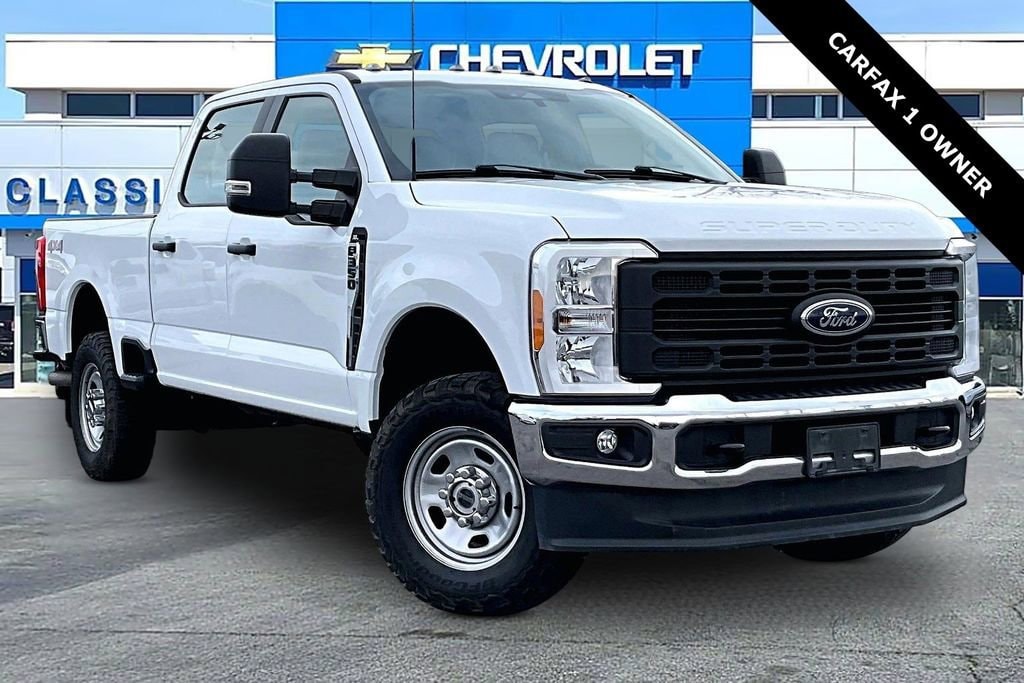 **1-OWNER**, **4WD**, **ANDROID CARPLAY**, **APPLE CARPLAY**, **AUTO HEADLIGHTS**, **BLUETOOTH**, **CLEAN CARFAX 1-OWNER**, **CLEAN CARFAX**, **HD RADIO**, **KEYLESS ENTRY**, **REAR BACKUP CAMERA**, **TOW PACKAGE**, **USB PORT**. Order Code 610A, Snow Plow Prep Package, XL Chrome Package, 17 Argent Painted Steel Wheels, 18 Argent Painted Steel Wheels, 4 Speakers, 4-Wheel Disc Brakes, 410 Amp Dual Alternators, ABS brakes, Air Conditioning, AM/FM radio, AM/FM Stereo w/MP3 Player, Brake assist, Compass, Delay-off headlights, Dual 68 AH/65 AGM Batteries, Dual front impact airbags, Dual front side impact airbags, Electronic Stability Control, Emergency communication system: SYNC 4 911 Assist, Exterior Parking Camera Rear, Front anti-roll bar, Front Center Armrest w/Storage, Front reading lights, Fully automatic headlights, HD Vinyl 40/20/40 Split Bench Seat, Heated door mirrors, Illuminated entry, Interior Work Surface, LED Roof Clearance Lights, Low tire pressure warning, Outside temperature display, Overhead airbag, Overhead console, Panic alarm, Passenger vanity mirror, Power door mirrors, Power steering, Power windows, Rear reading lights, Rear step bumper, Remote keyless entry, Speed control, Split folding rear seat, Steering wheel mounted audio controls, SYNC 4, Tachometer, Telescoping steering wheel, Tilt steering wheel, Traction control, Trip computer, Turn signal indicator mirrors, Upfitter Switches (6), and Variably intermittent wipers.